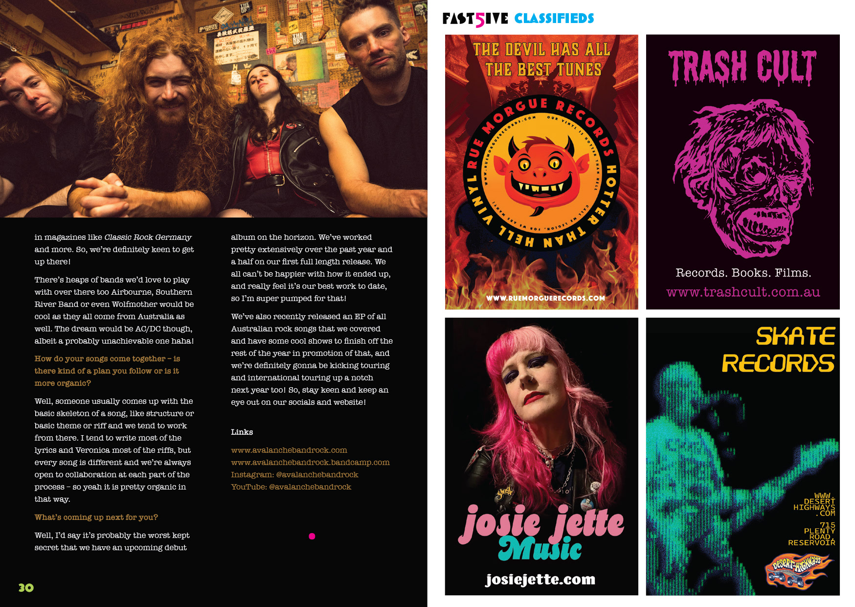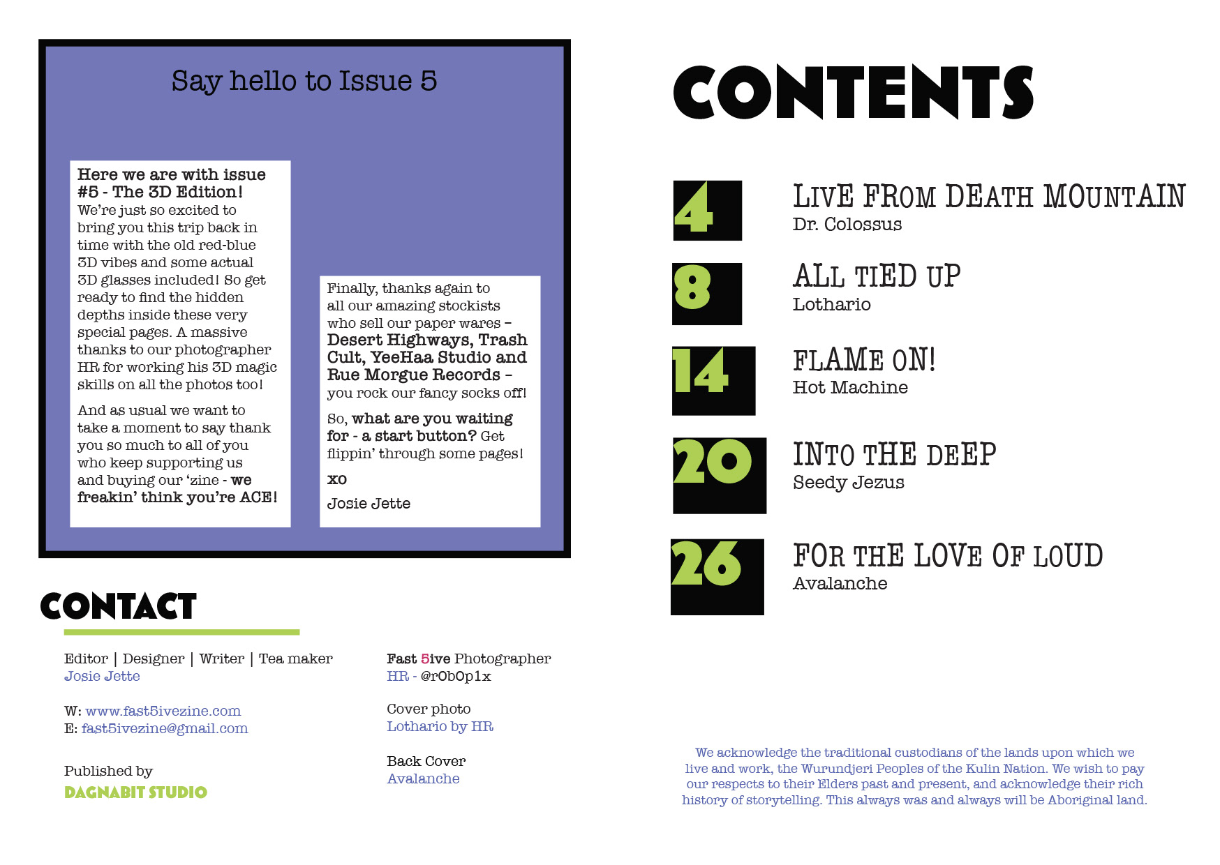 The concept behind the zine is that we only ask our interviewees 5 questions, and generally have 5 people we focus on each issue. This has been a really fun project to work on as I love creating and sharing Zines and the design has really come together in a fun and rockin' way.